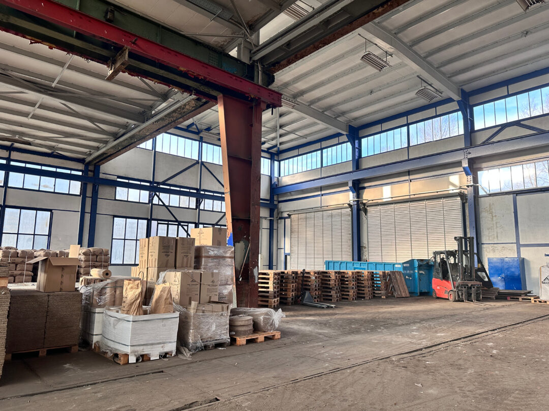 Die Produktionshalle ist derzeit noch weitgehend leer, da unsere Faseraufschlussanlage in den kommenden Monaten geliefert und anschließend vor Ort aufgebaut wird.